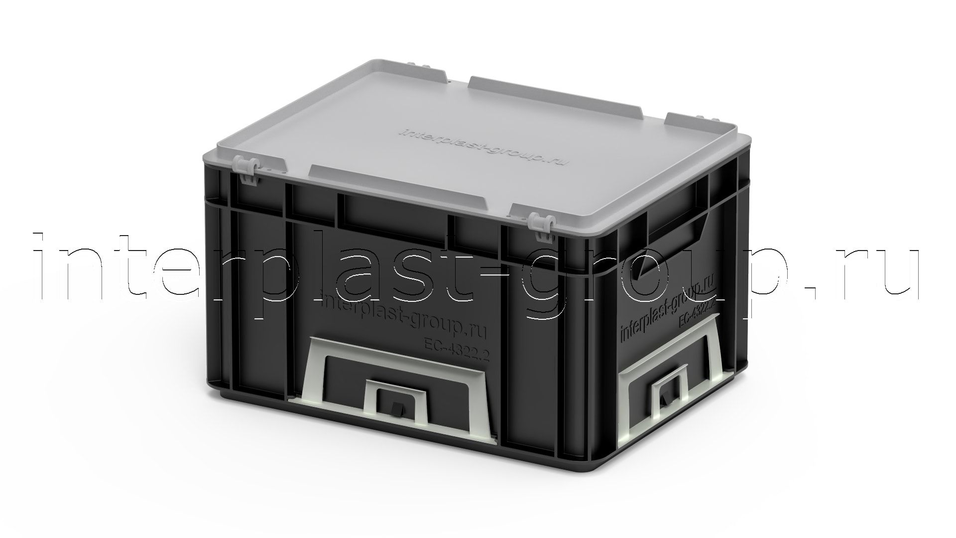 Евроконтейнер закрытые ручки/сплошное дно (черный), 400x300x220 мм