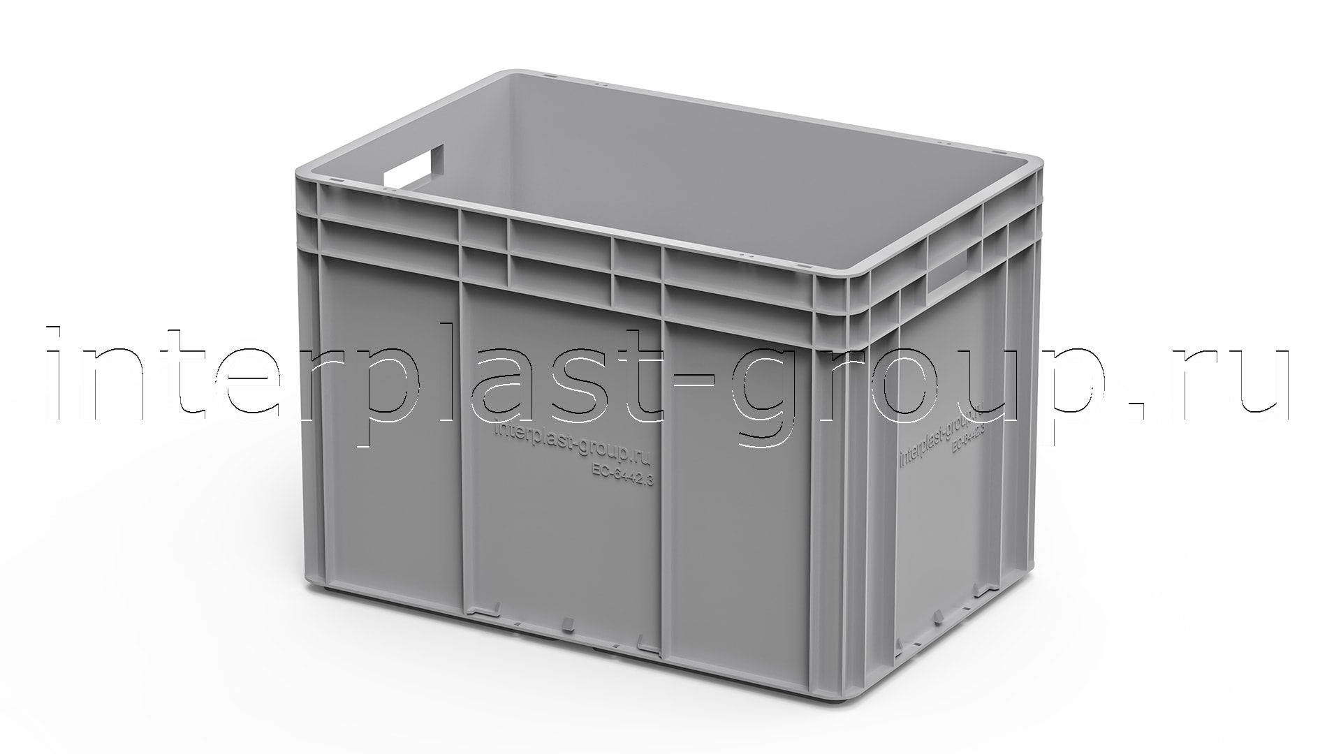 Евроконтейнер открытые ручки/усиленное дно (серый), 600x400x420 мм