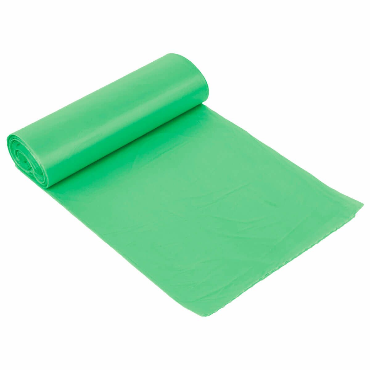 Мешки для мусора 35 л, биоразлагаемые с завязками, зеленые, в рулоне 20 шт., ПНД, 11 мкм, 600х500 мм, Любаша, 608098