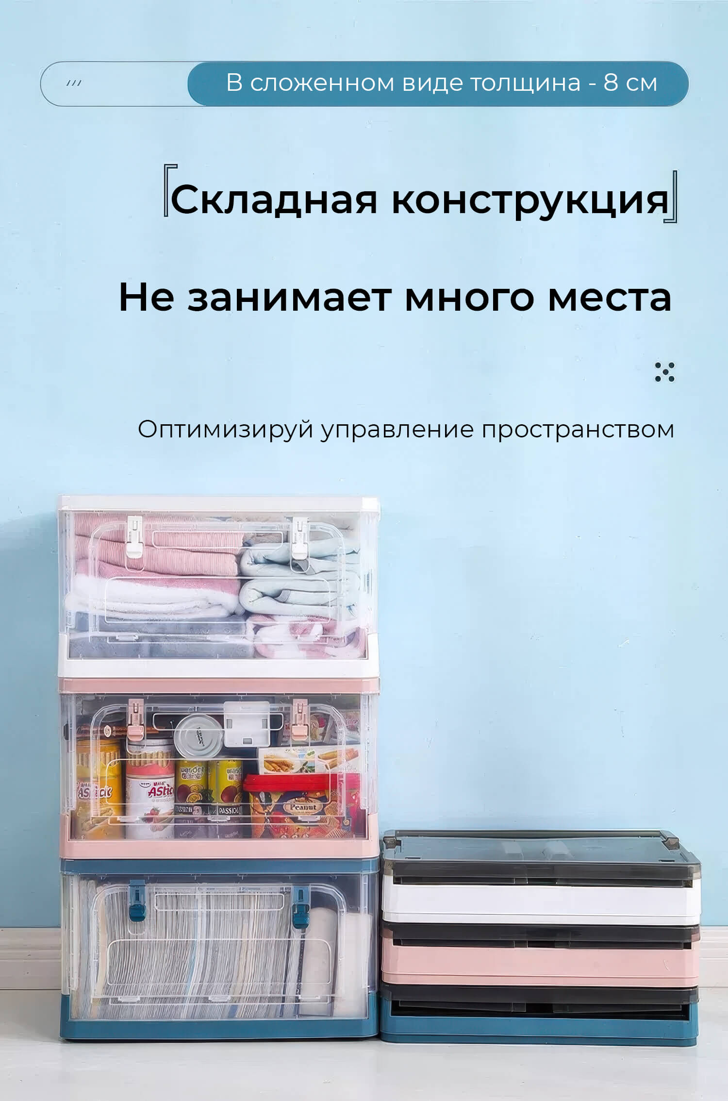 Пластиковая коробка с крышкой надежно защищает вещи от пыли и влаги, сохраняя их в чистоте. Прочная конструкция выдерживает ежедневные нагрузки, а складной механизм позволяет компактно хранить ящик, когда он не используется.