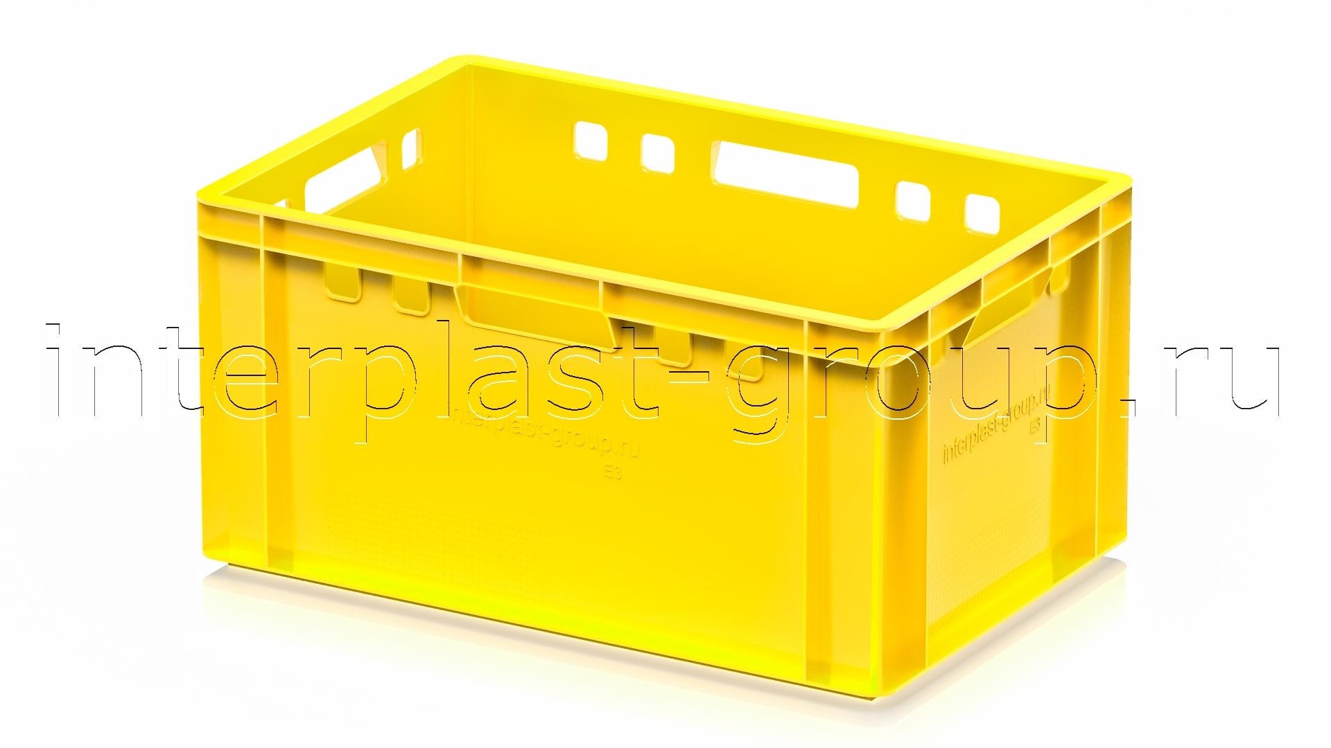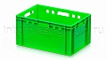 Ящик для мяса Е3 это третий по размеру в линейке мясных ящиков. Разработан специально для использования в мясной промышленности. Отлично штабелируется и собирается в единый сет со всеми ящиками серии. Изготовлен из первичного полиэтилена, и адаптирован для хранения в холодильных и морозильных камерах.