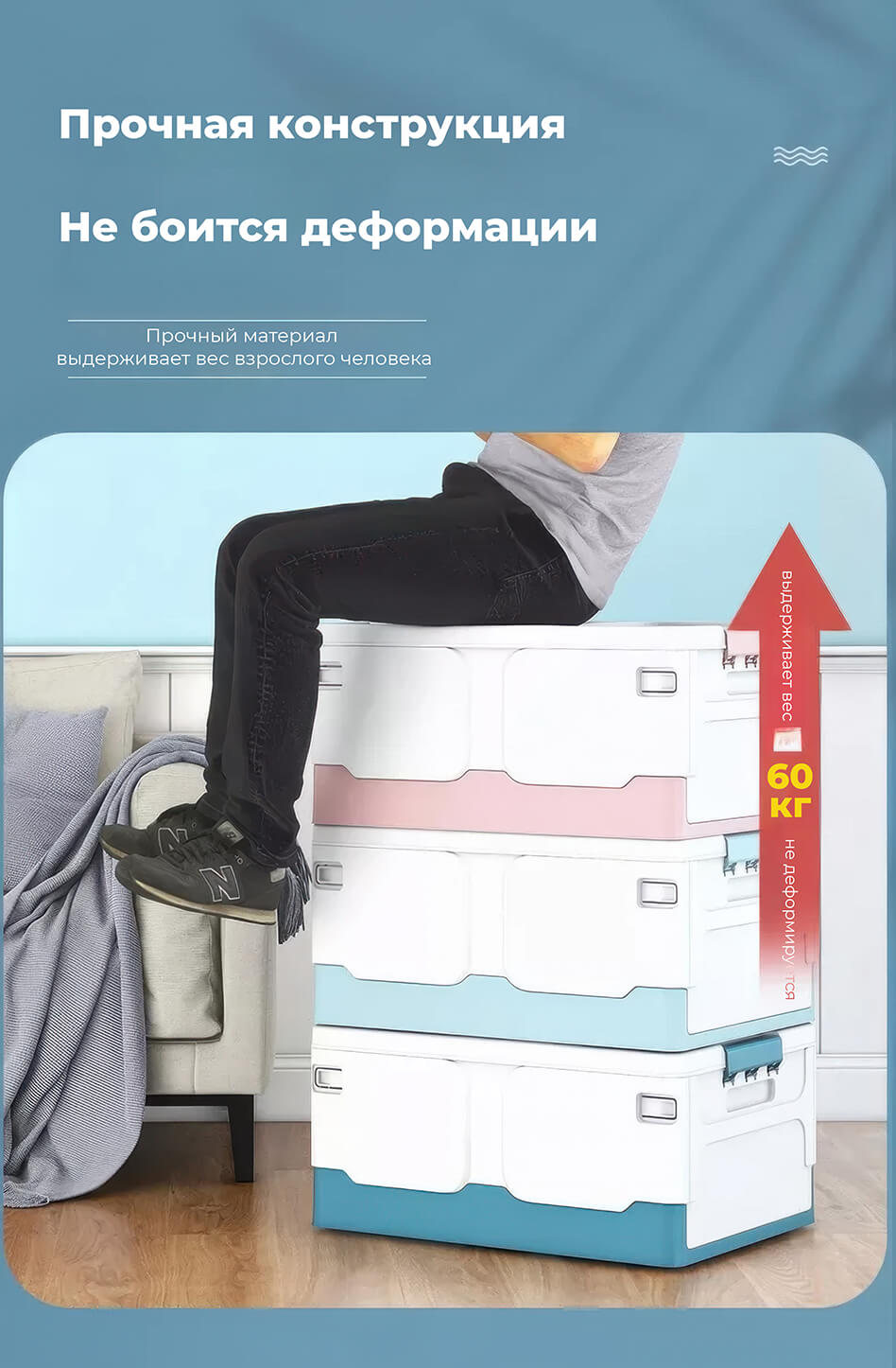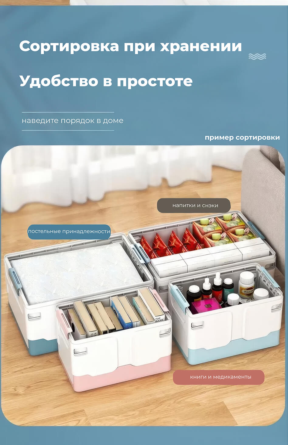 Складной ящик 370х240х240 мм голубого цвета – свежесть, чистота и порядок в вашем доме