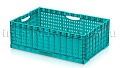 Складные ящики разработаны и спроектированы для хранения и перемещения плодо-овощных культур как внутри производства, так и между торговыми точками и складами. Благодаря функции складывания значительно экономят место при использовании в качестве возвратной тары. Перфорированные стенки обеспечивают сохранение свежести и сочность продуктов перфорации абсолютно на всех стадиях логистики. Штабелируются на паллетах 1200х1000 и 1200х800.