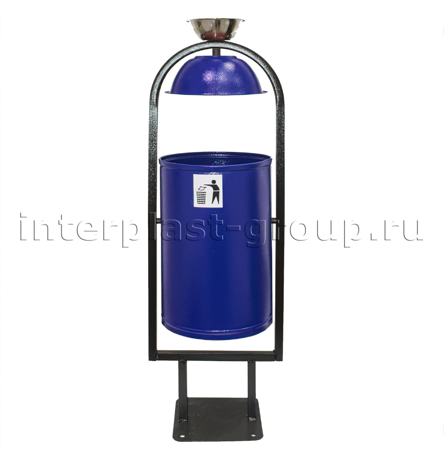 Урна уличная металлическая 21 л круглая с крышкой и пепельницей синяя
