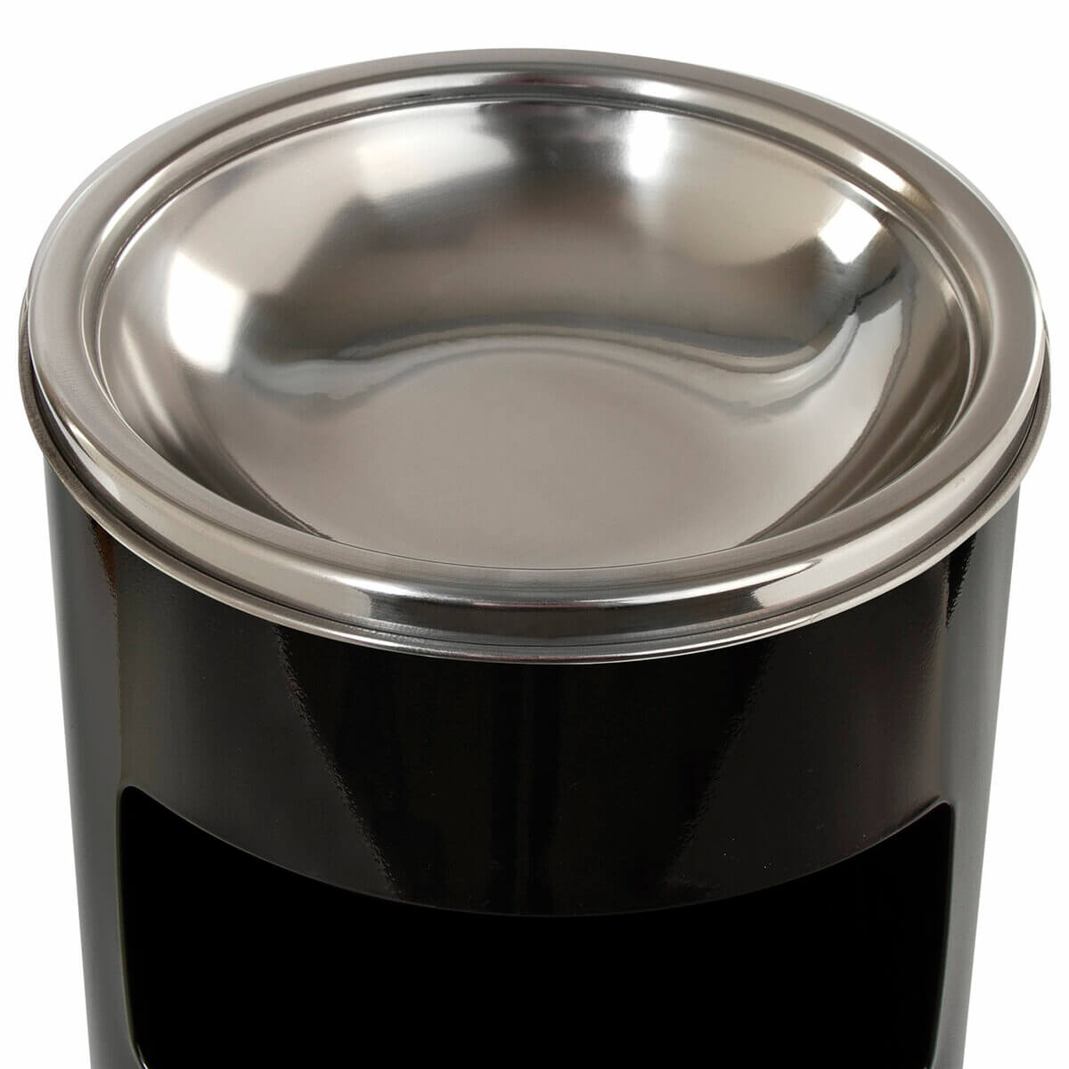 Интегрированная пепельница с крышкой предотвращает попадание горящих окурков и пепла внутрь урны, обеспечивая безопасность и предотвращая пожары. Боковое окно упрощает процесс сброса крупных предметов.