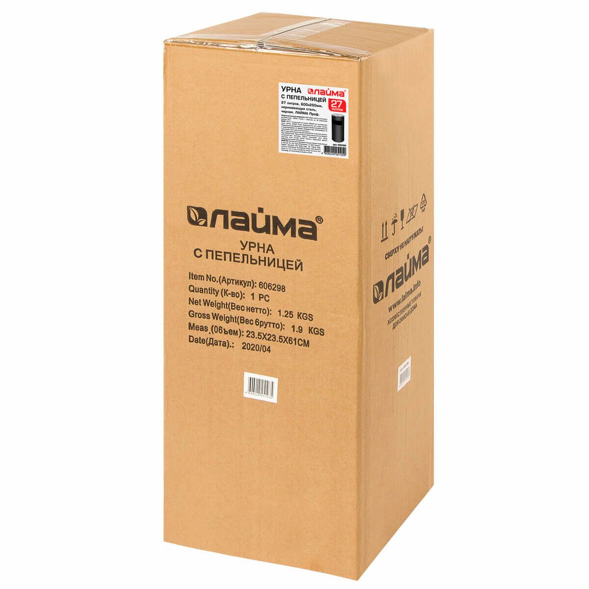 Урна с пепельницей 27 л, нержавеющая сталь, черная, LAIMA PROFESSIONAL в Гомеле